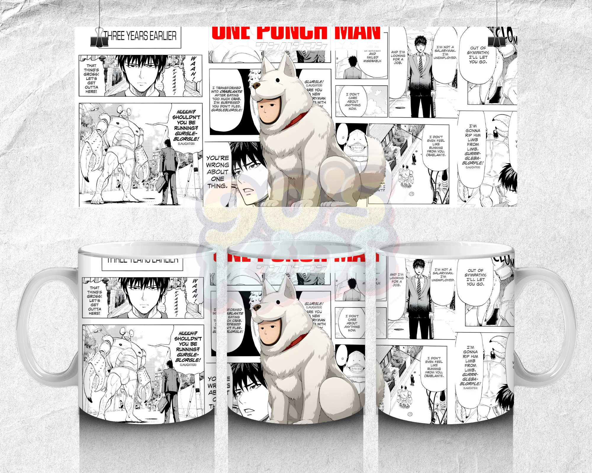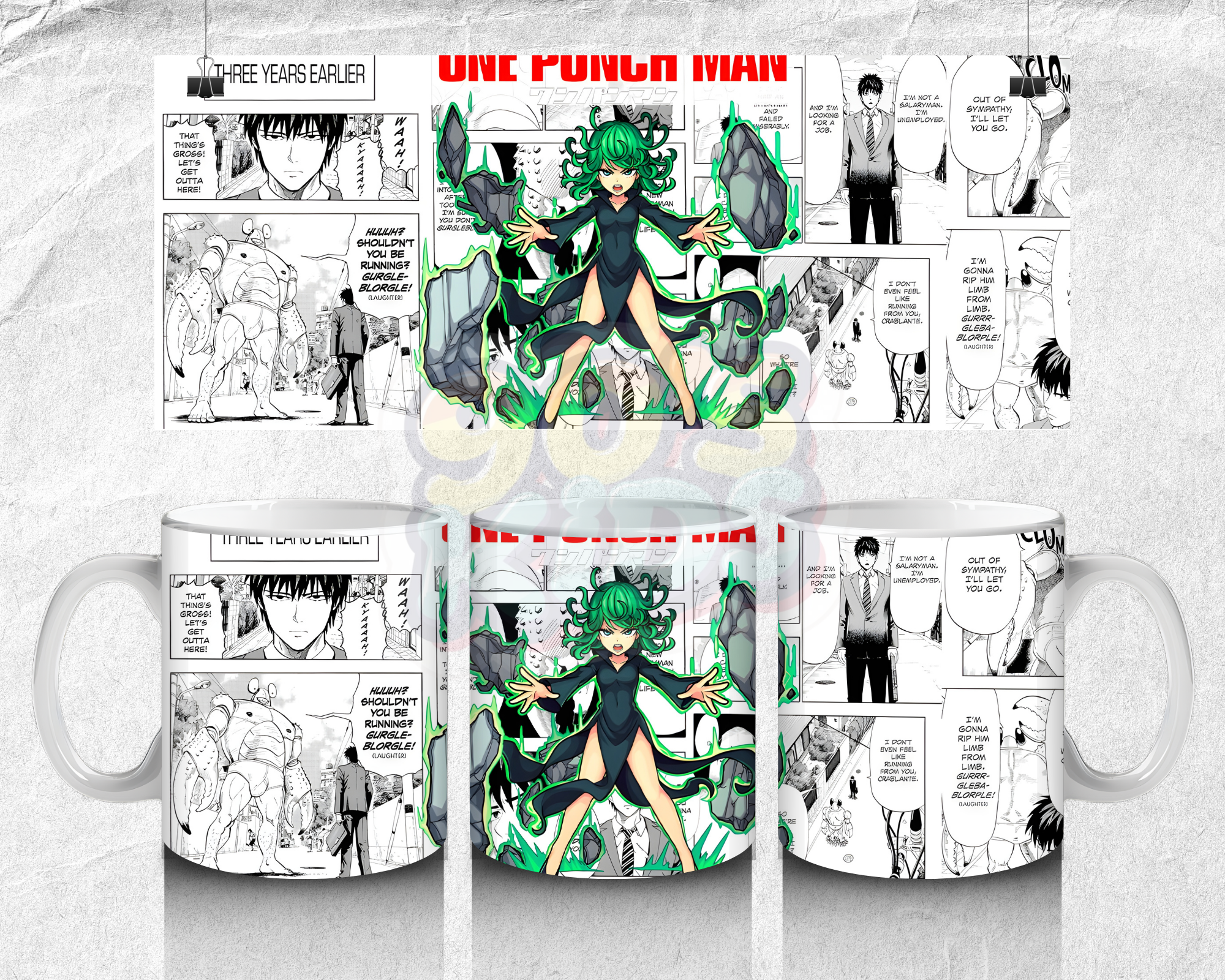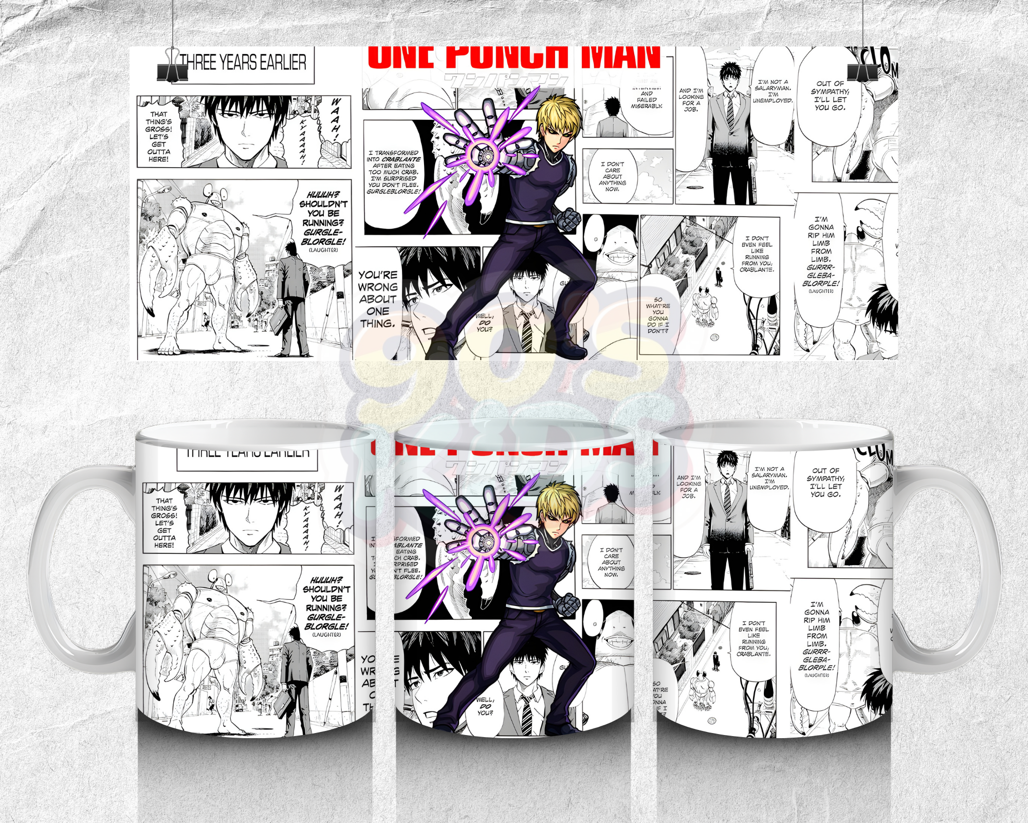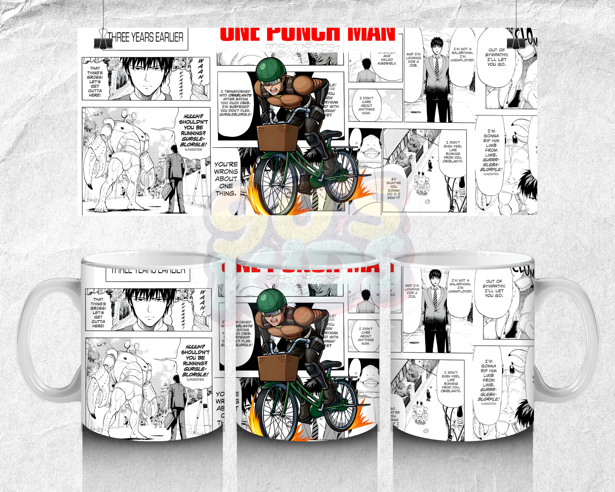 ₹249.00A powerful Black Rock Shooter mug featuring mech-style anime artwork with futuristic elements and manga panel background, perfect for action anime fans.