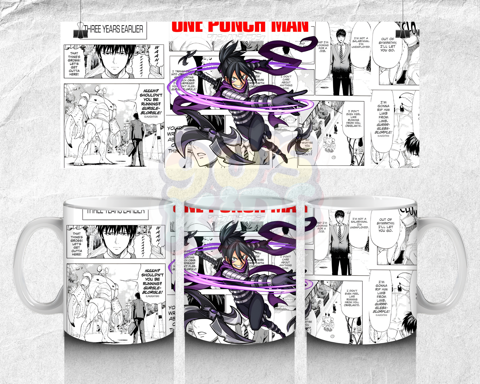 ₹249.00A bold Black Rock Shooter mug featuring a shadow-inspired anime design with manga background, ideal for fans who prefer sleek and dark visuals.