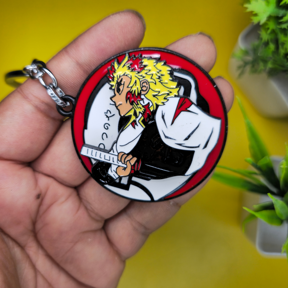 Anime Kyojuro Rengoku Metal Keychain – Flame Hashira Round Designer Keyring