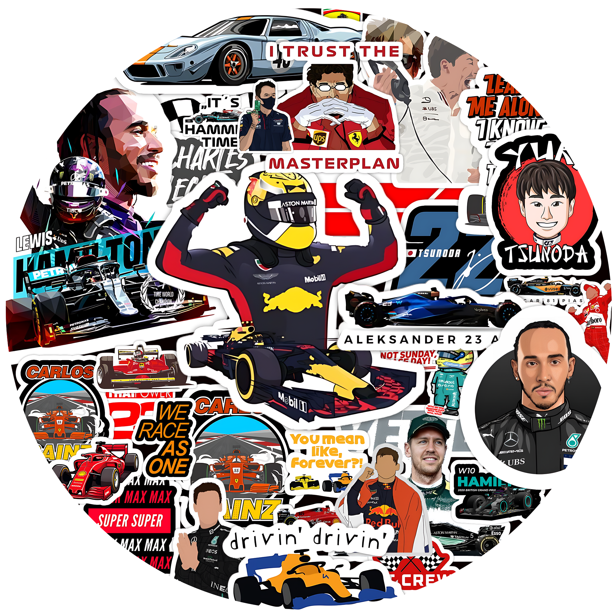 - ? 52 Unique High-Quality Stickers ? Featuring Lewis Hamilton, F1 cars, helmets, racing quotes, and vibrant graphics