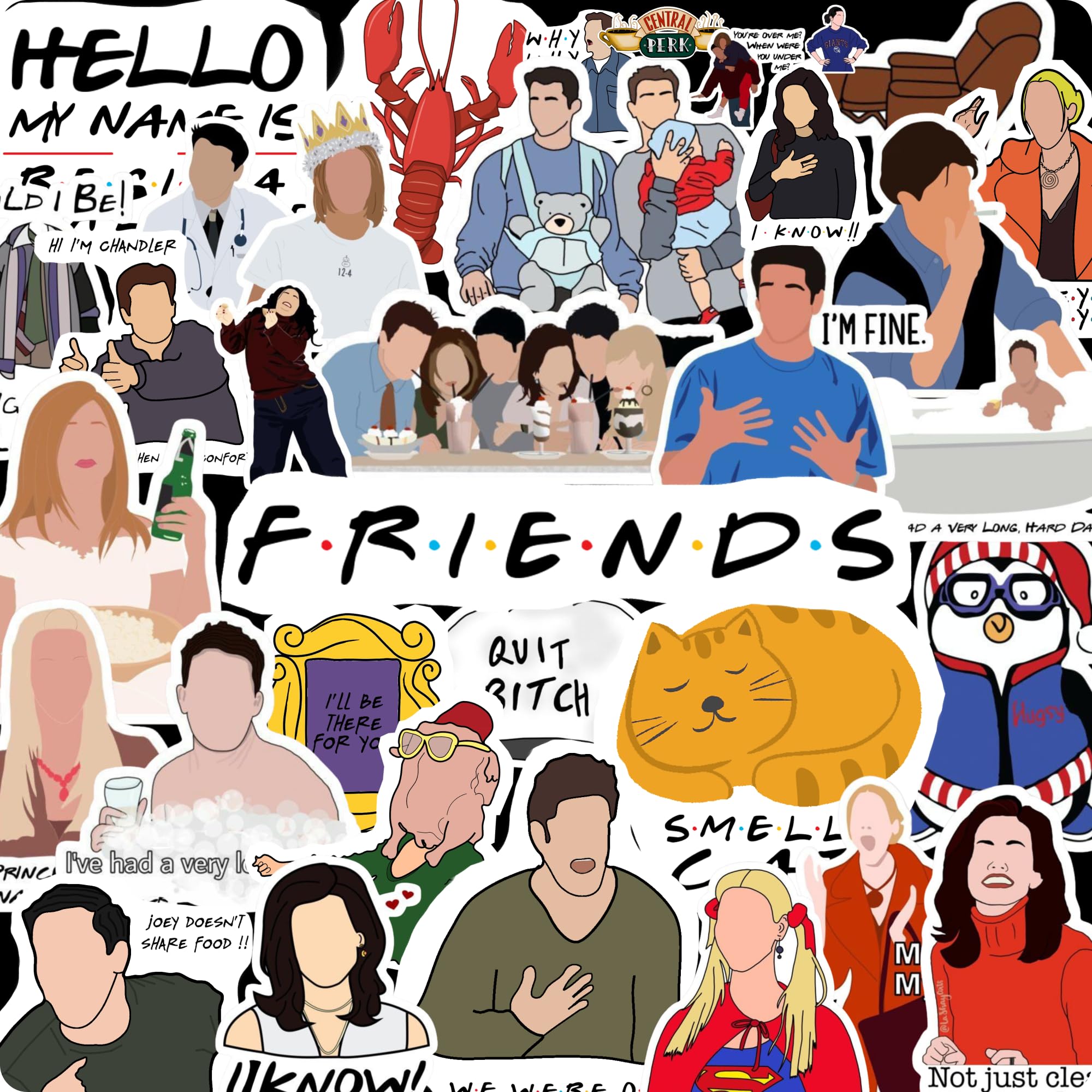 Set of 50 Friends Sitcom Stickers includes Chandler Bing, Phoebe Buffay, Rachel Green, Joey Tribbiani, Monica Geller, Ross Geller. These stickers are crafted out of love with High quality Ink. In order to enure optimum longivity we’ve laminated them with High quality meterial. This should help promote resitance to water, fading, minor scratches. The gum is highly adhesive forming a very strong bond with any flat, plain and even dirt free surface. The adhesive is made of premium quality meterial to ensure it leaves little to no resedue for reapplication. Feel appretiated for your sticker collection. Apply it to your laptop or phone, Journal or notbook, Study table or Door, Fridge or Ac, Bicycle or Bike, the possibility of customization is endless and we would love to be a part of it.