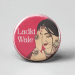 90’s Kids Ladki Wale Wedding Party Pin Badge, Round Decorative Brooch, Indian Traditional Design (10, Light Red)