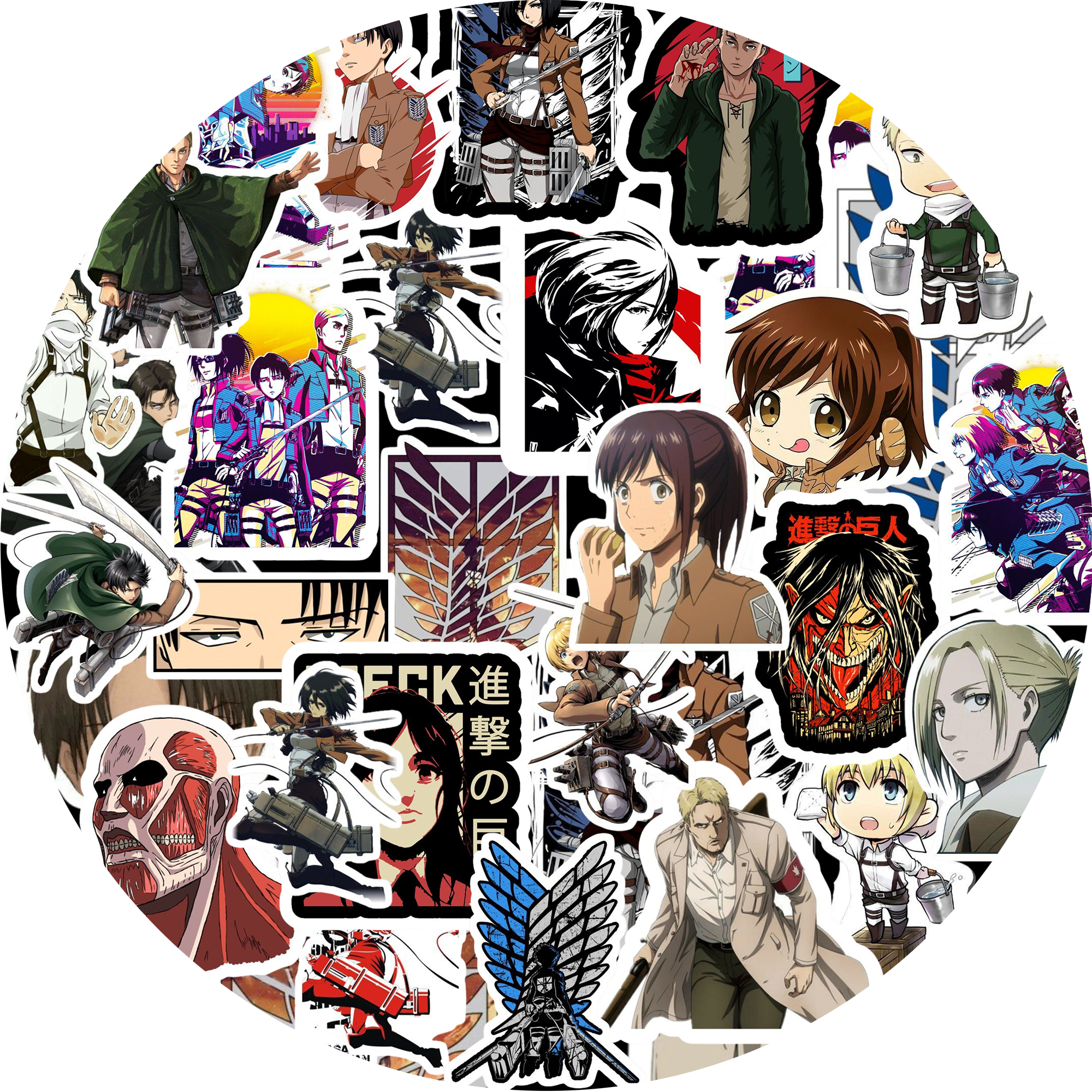 - High-quality vinyl stickers featuring Attack on Titan, Star Wars, Rick & Morty, music bands, gaming, anime, and pop culture icons.
