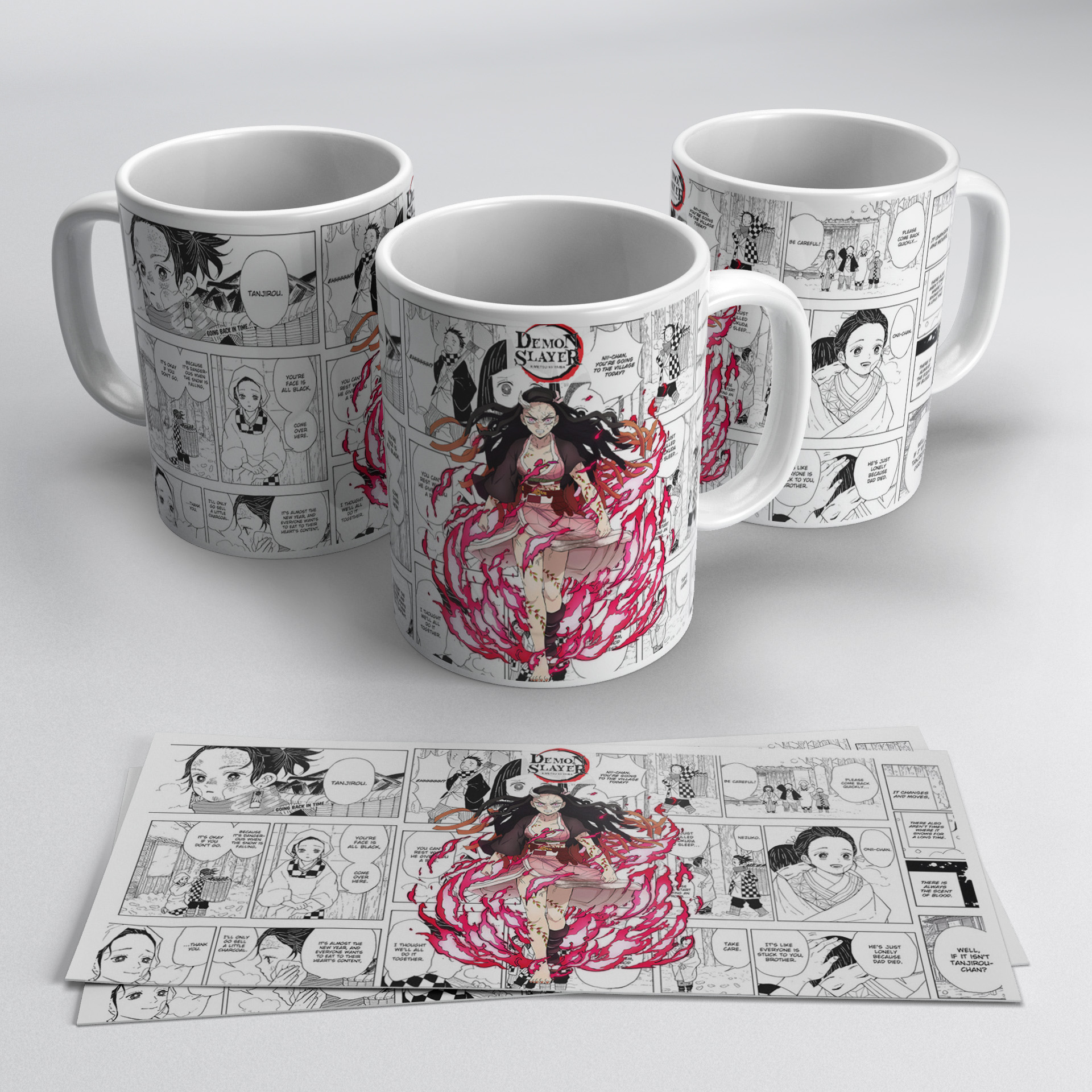 This mug features Nezuko in her powerful awakened form surrounded by intense pink flame effects.