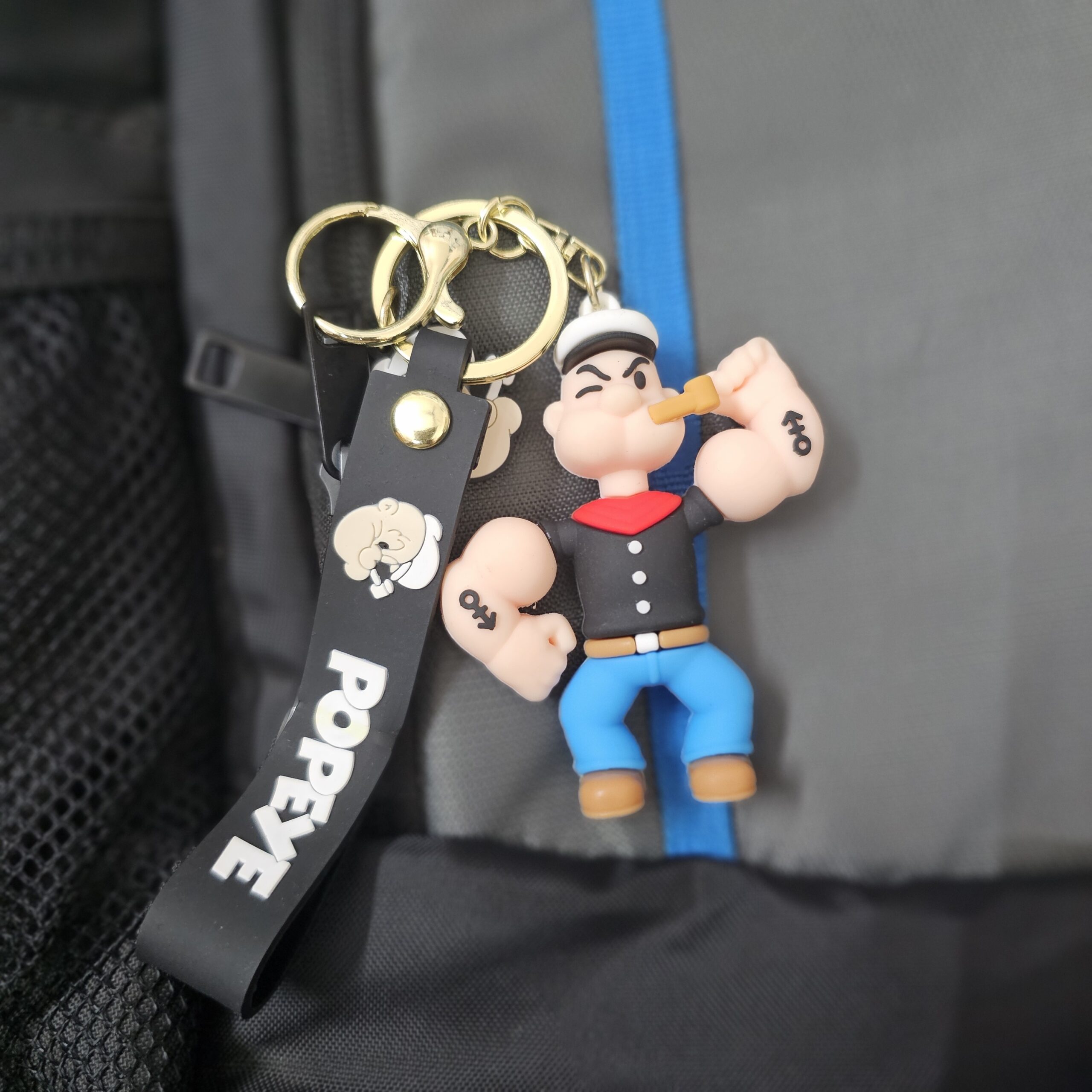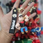 Popeye Cartoon Rubber Keychain with Strap Stylish Character Keyring for Keys Bags