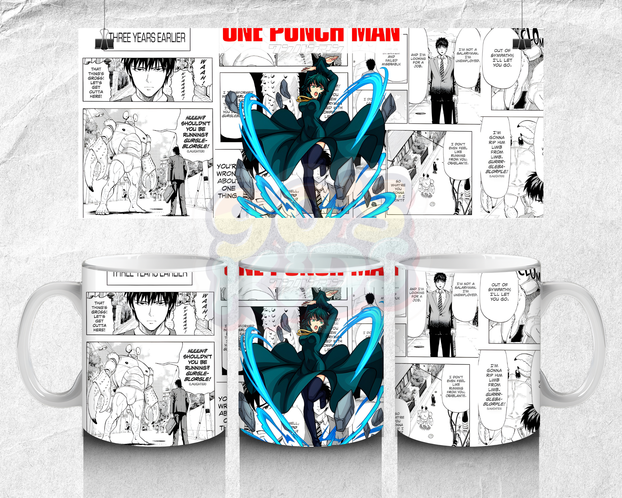 ₹249.00This mug shows the Sakamoto Days team in an action style design. It looks vibrant and full of energy. A great choice for fans who like group anime characters.