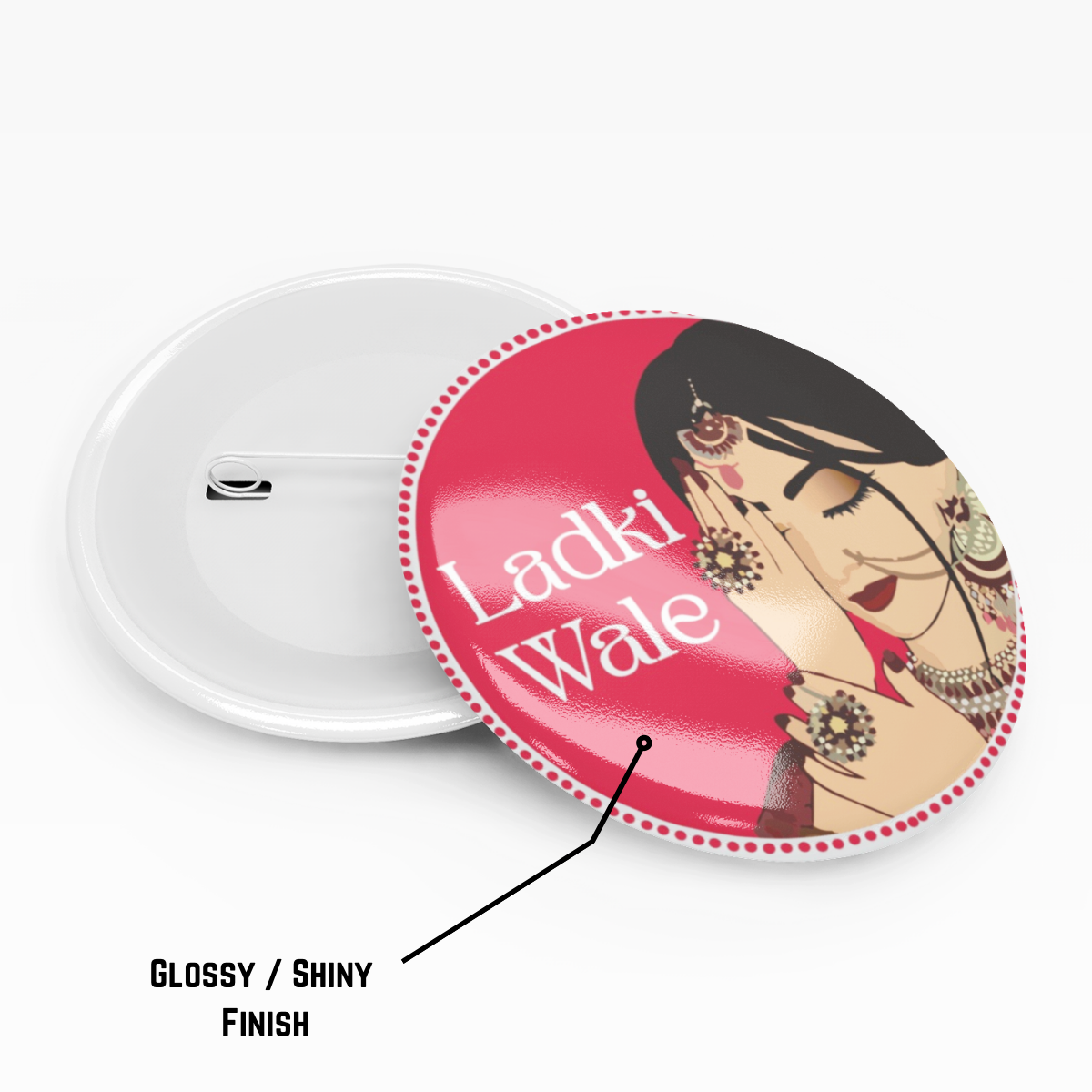 90’s Kids Ladki Wale Wedding Party Pin Badge Light Red