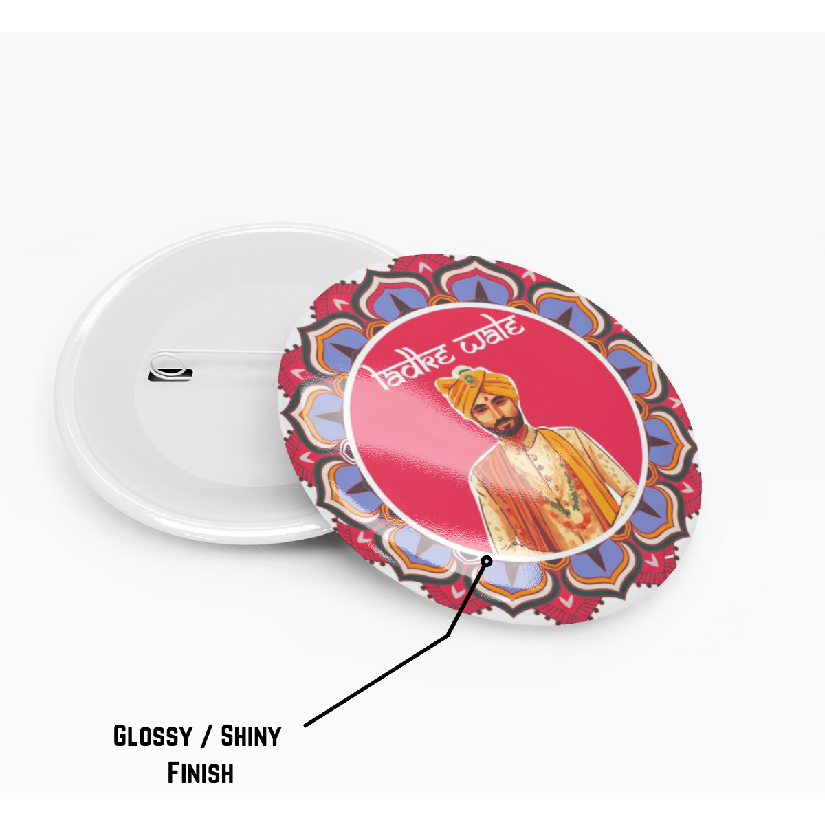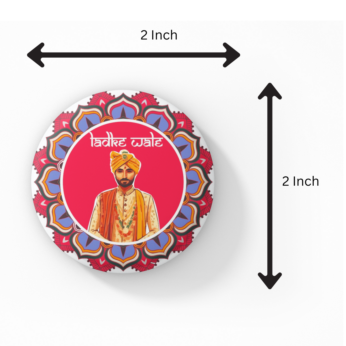 90’s Kids Decorative Button Badge, Traditional Groom Design, Ladkey Wale Red