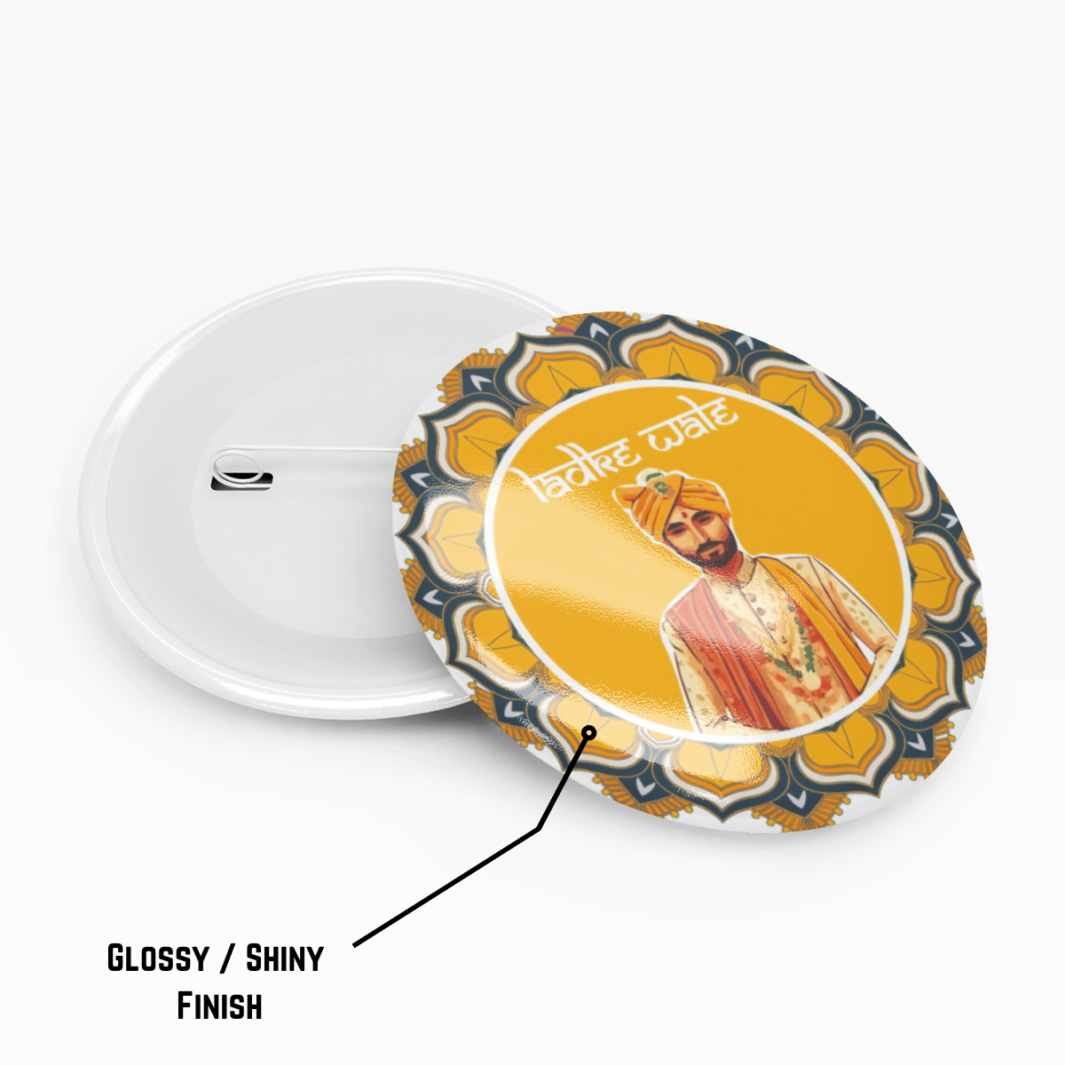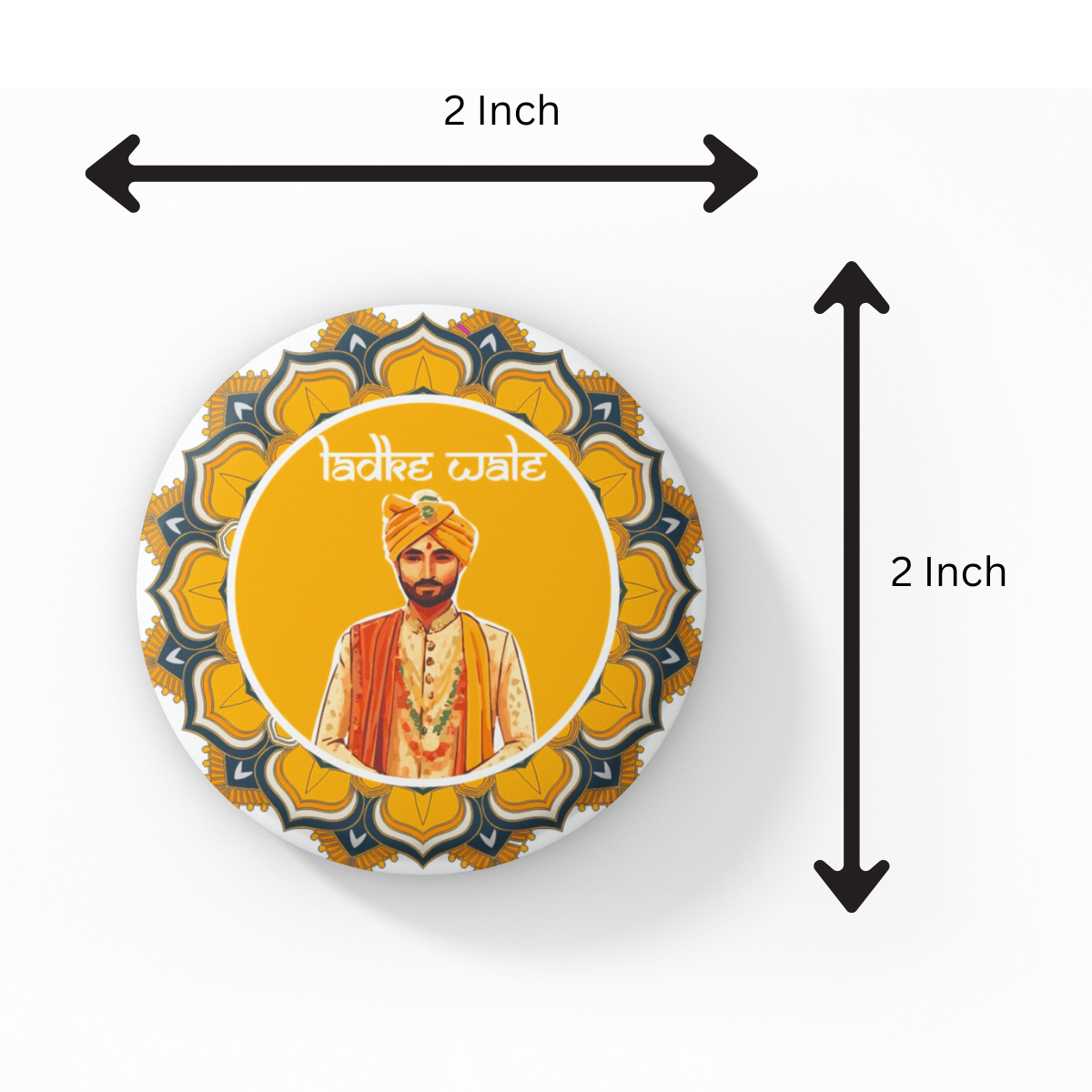 90’s Kids Decorative Button Badge, Traditional Groom Design, Ladkey Wale Red (Yellow)