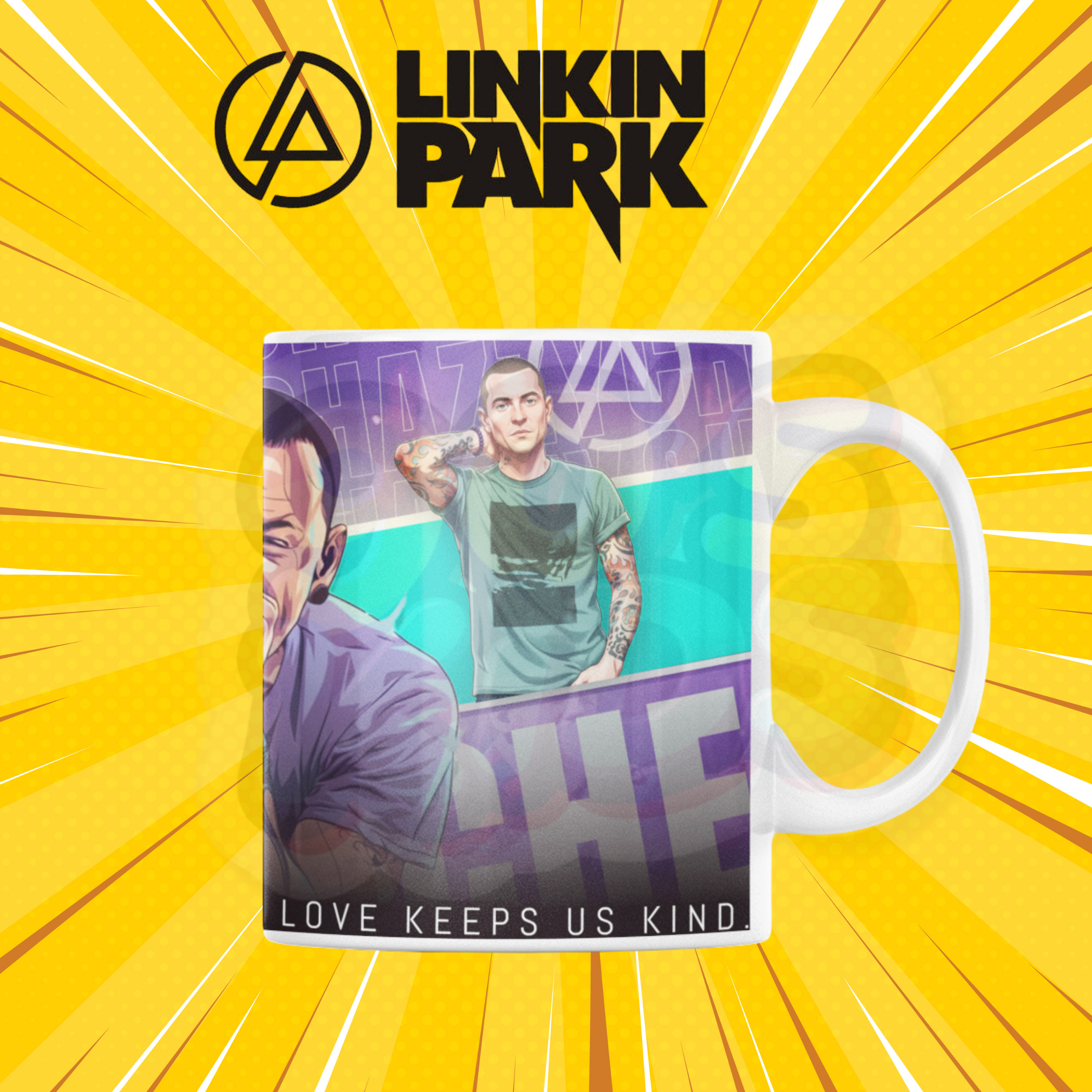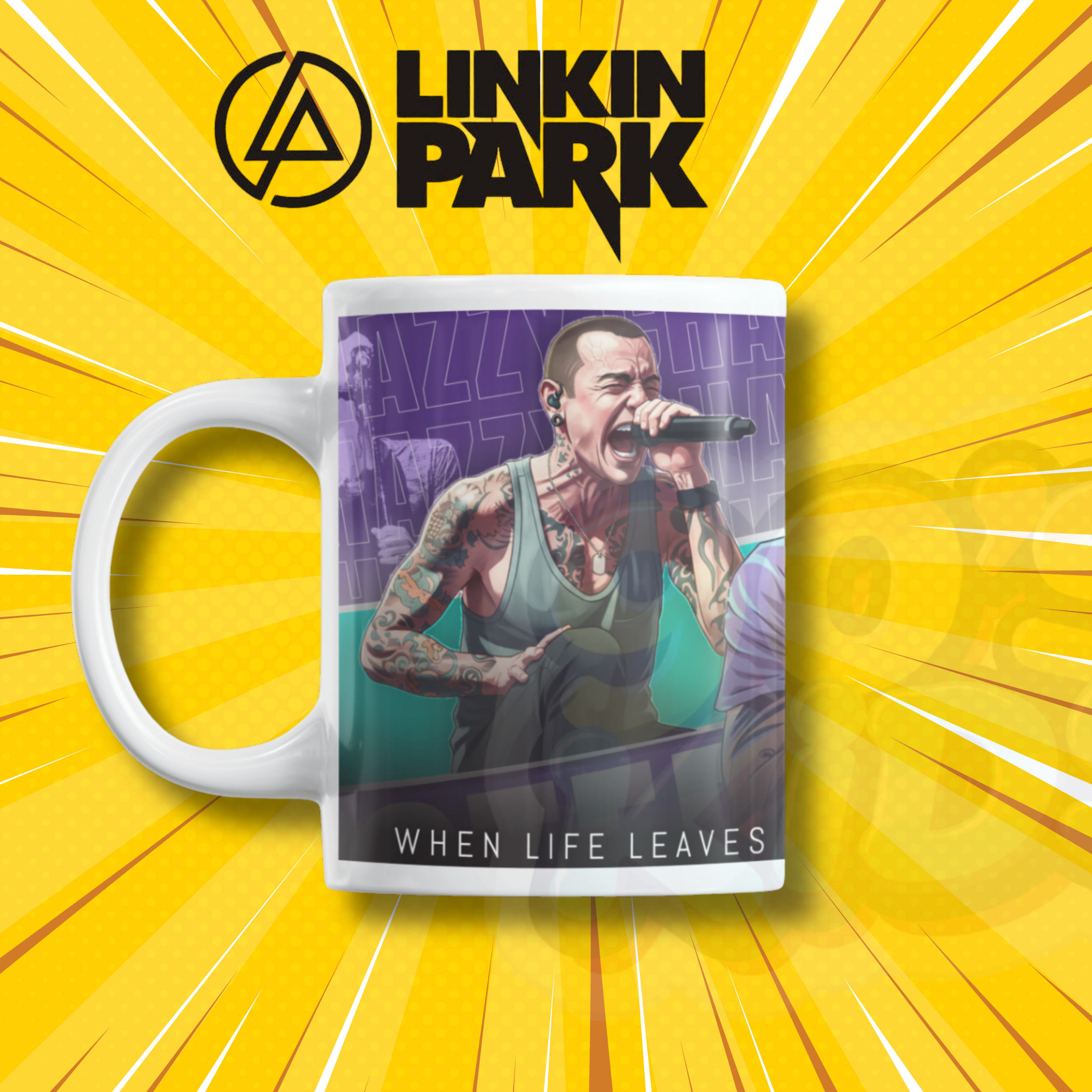 This mug has a powerful Linkin Park singer design with a cool music theme print. It is made from ceramic and has a smooth finish. The mug is good for tea, coffee or milk. It is easy to hold and nice for daily use at home or office.