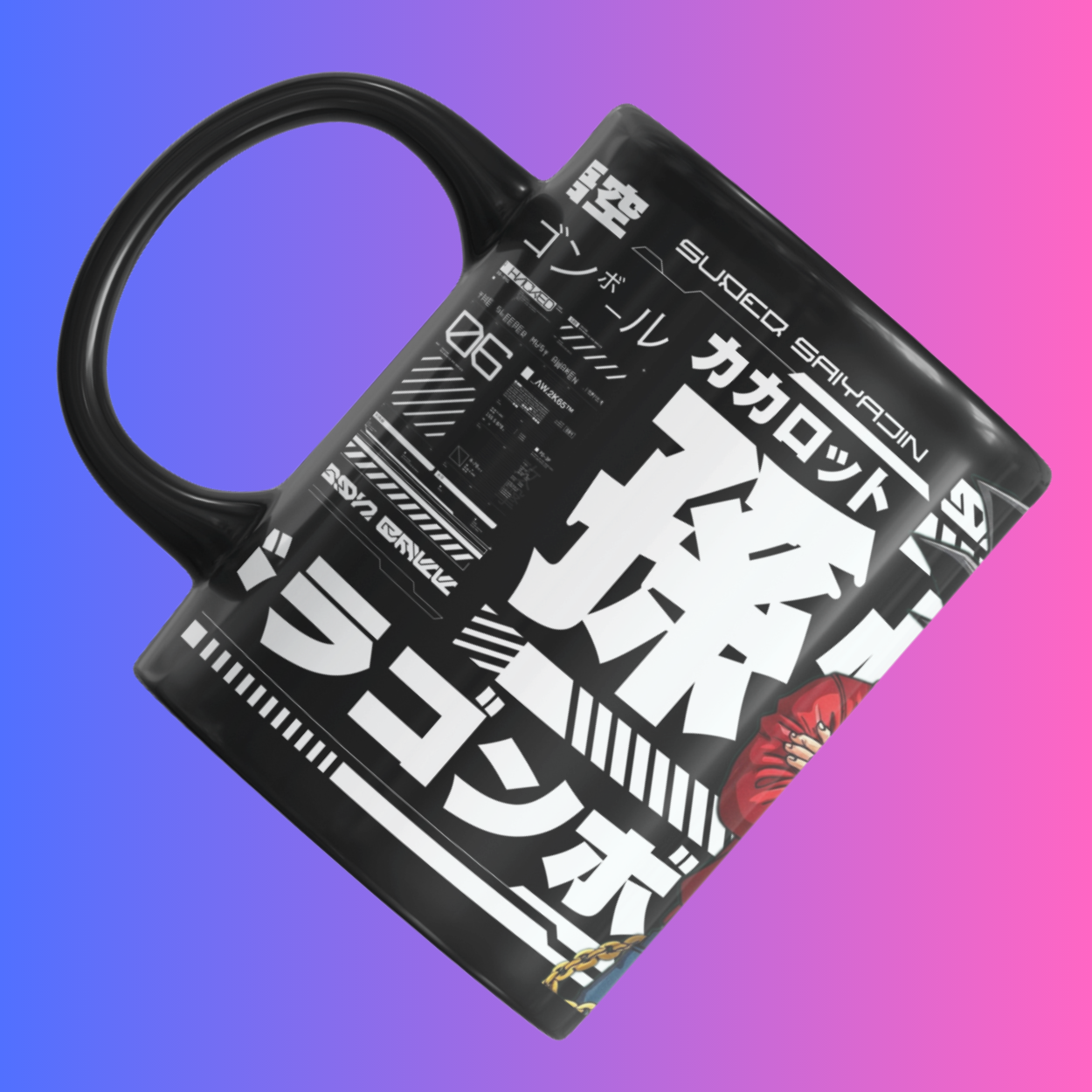 This mug has a black theme with Goku anime graphic design. It looks bold and stylish with modern text print. The mug is made from ceramic and is good for tea, coffee or milk. It is simple to use and perfect for daily use.