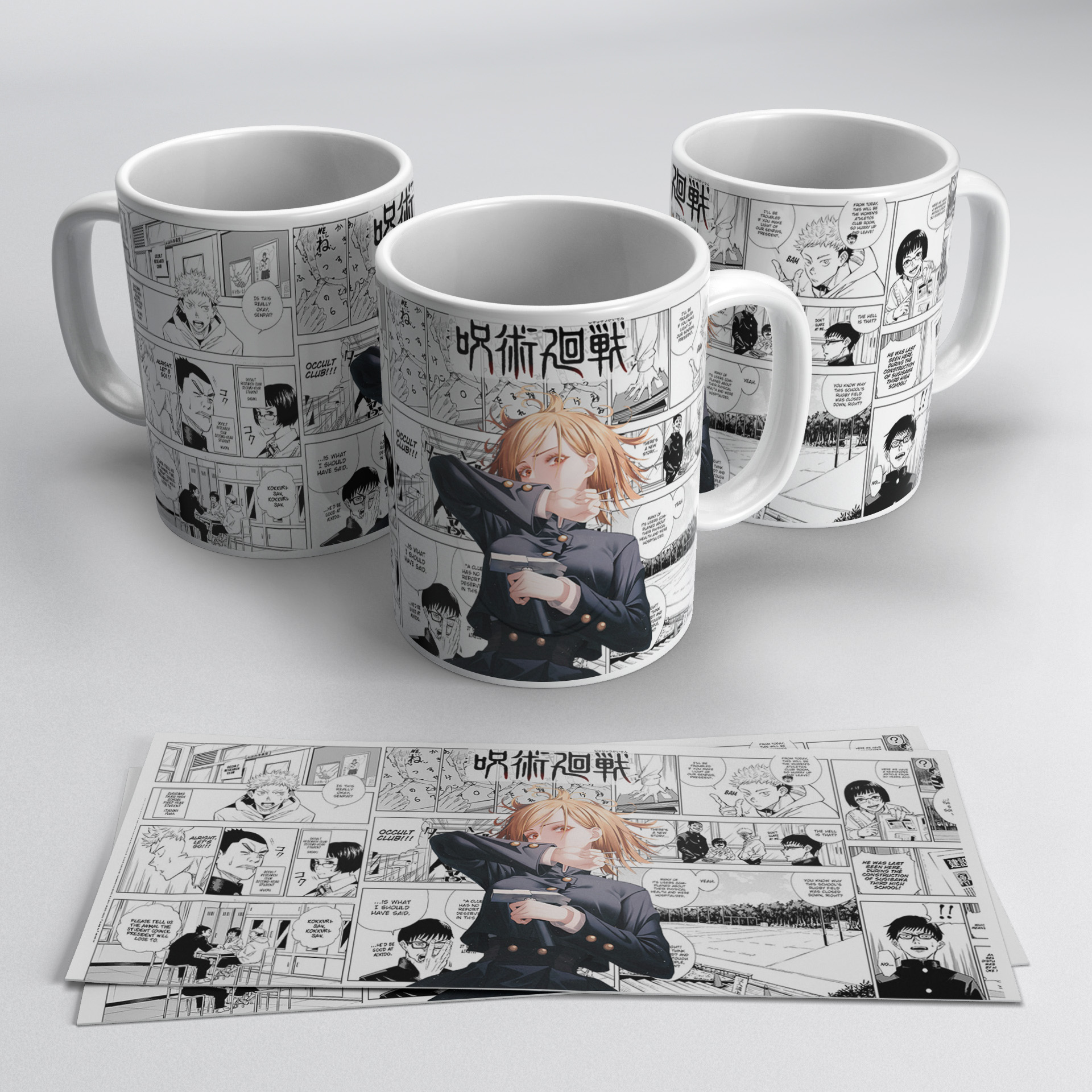 This mug highlights Nobara with a clean manga style background that gives a sharp and modern look. The design feels simple but strong. A great option for fans who like confident anime characters.