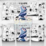 This mug highlights an energetic action pose that gives a lively anime vibe. The background manga panels add extra detail and make the design more interesting. A great pick for anime fans who like stylish and active character prints.