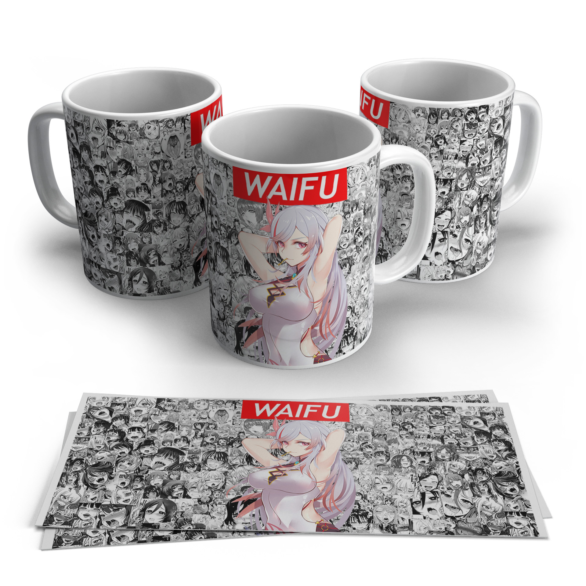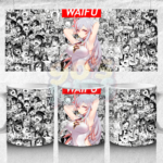 This mug features a stylish silver-haired waifu design with a detailed manga background. The contrast between color and black-white panels makes it look unique. A nice choice for anime lovers who enjoy clean and attractive designs.