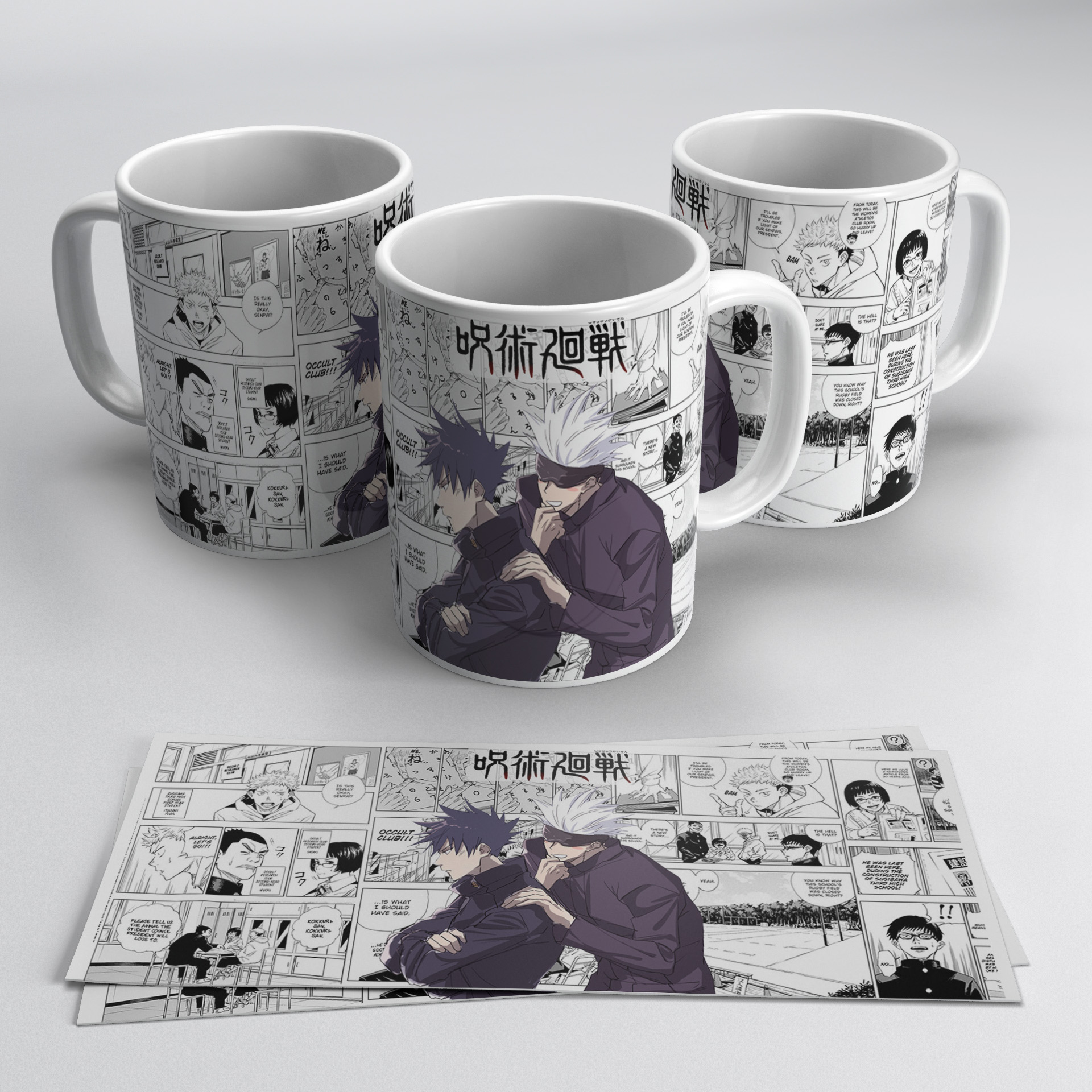 A stylish duo anime mug featuring Gojo and Megumi with manga wrap design, perfect for collectors and daily use.