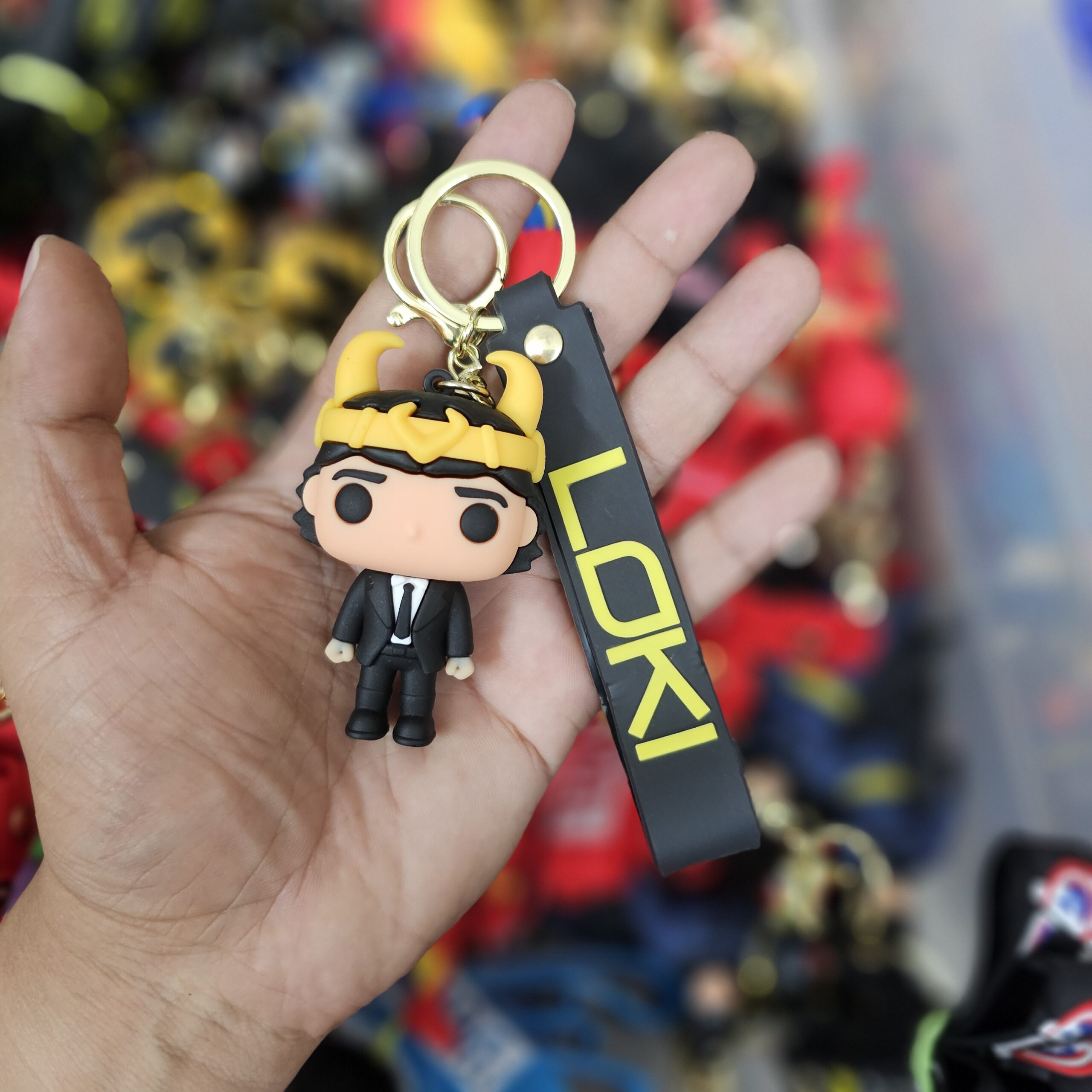 Cool Loki cartoon keychain with stylish strap and soft rubber build. Durable and lightweight for everyday use. Perfect for Marvel lovers.