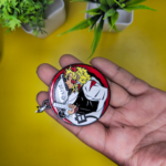 This Rengoku metal keychain features a vibrant anime design with a glossy finish that stands out beautifully. It is strong, compact and perfect for daily use with keys, bags or accessories. A great collectible for Demon Slayer fans who love stylish and unique keyrings.